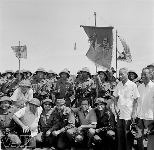 Prime Minister Fidel Castro and Prime Minister Pham Van Dong with liberation forces in Quang Tri province (Photo: VNA)