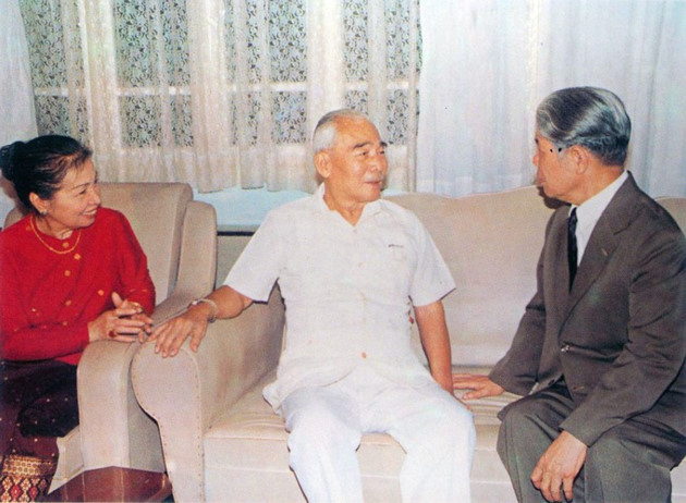 Comrade Do Muoi visits Prince Souphanouvong, former Prime Minister of the Lao People's Democratic Republic.