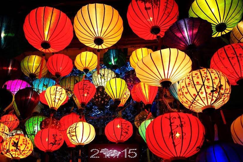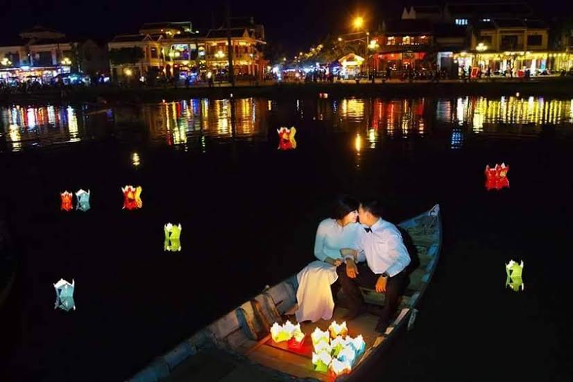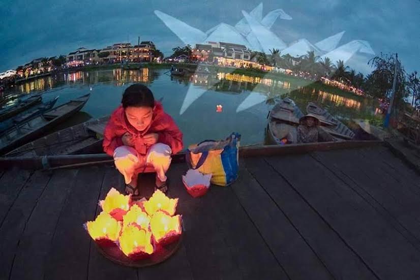 ![]() A little girl prepares to let go some colored lanterns into Thu Bon river |