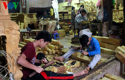 (VOVworld)- About 40km west of Hanoi, Thạch Thất District is known for making wooden devotional items. Products here are made from natural wood.