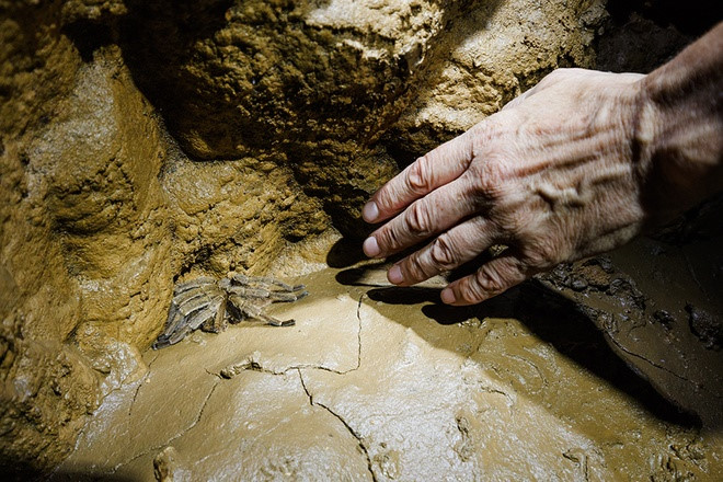 | A fossilized mountain goat skeleton dating back a few hundred years. |