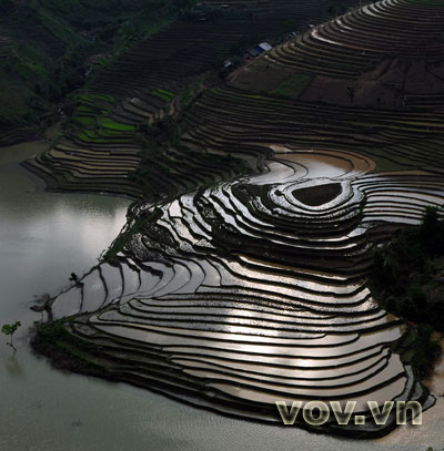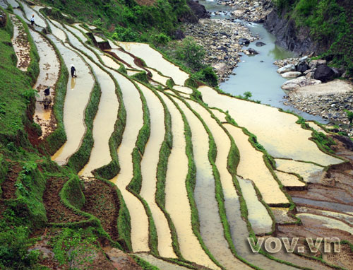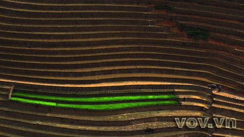 (VOV) - Green terraced fields at the foot of the mountain seemingly keep off the intense heat of the sun in summer.