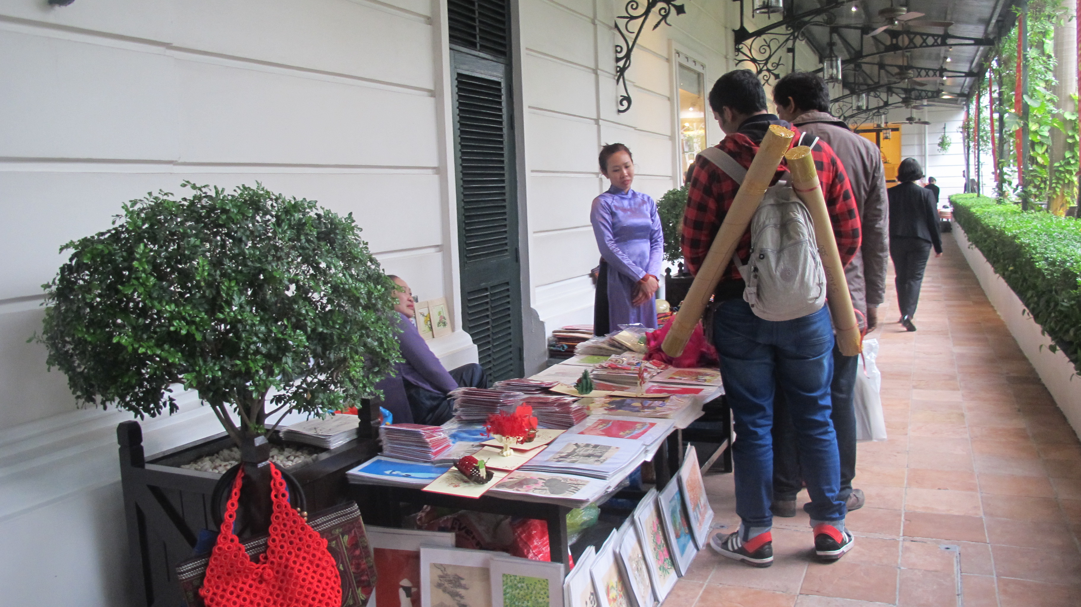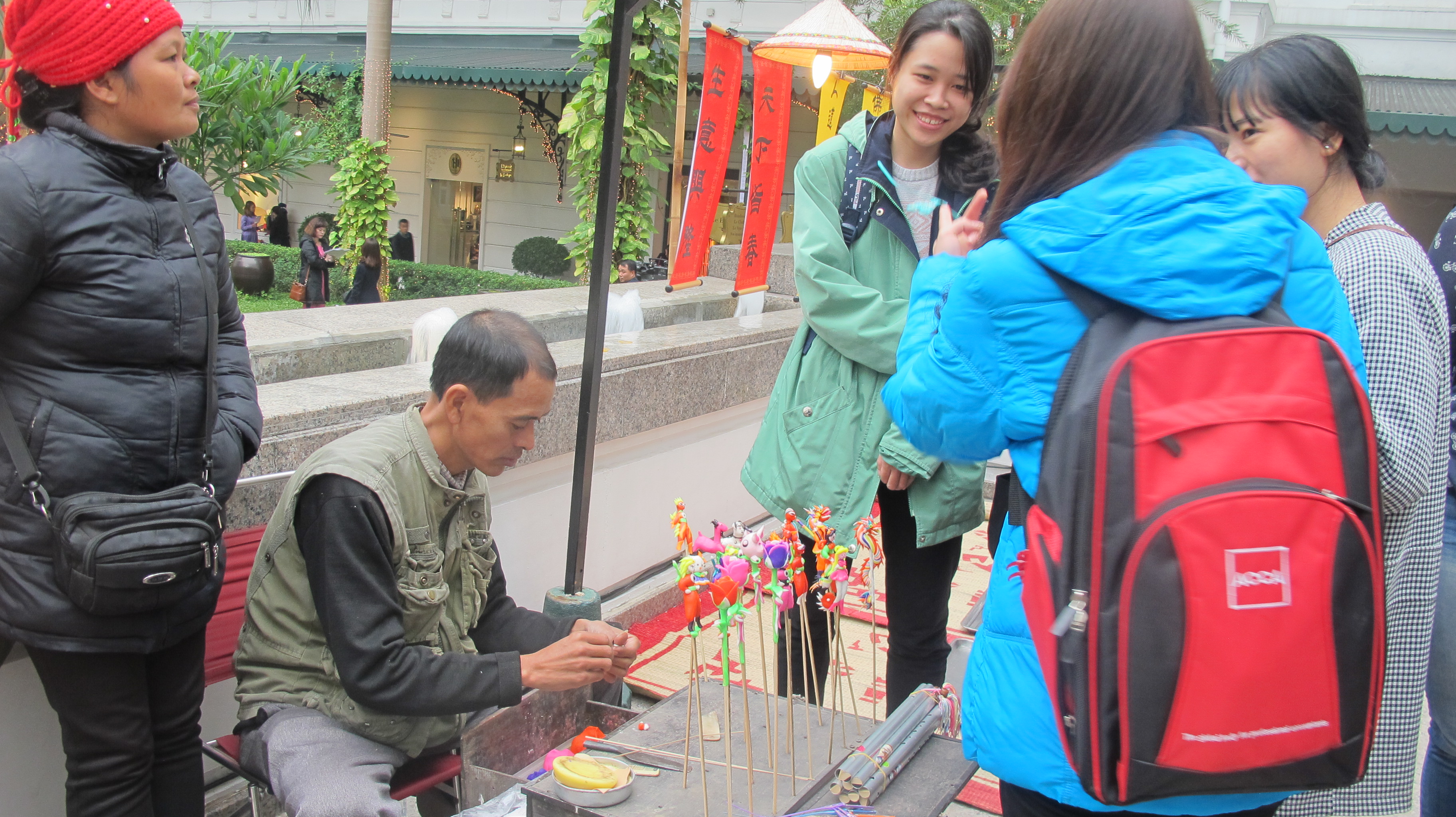 (VOVworld) – Some of the most distinctive features of the Vietnamese Tet holiday were showcased at an event called “Cho Que”, or a traditional Vietnamese market, at the Hanoi Sofitel Legend Metropole. The venue for the event was the hotel’s open-air courtyard. At Cho Que, vendors set up shops along the walkway bordering one side of the hotel’s inner sanctum. Dressed in traditional garb, vendors sold food and handicrafts. Other activities included a dragon dance, Vietnamese traditional music performances and a special Chung or square sticky rice cake making competition. The event drew many young Vietnamese as well as foreigners.