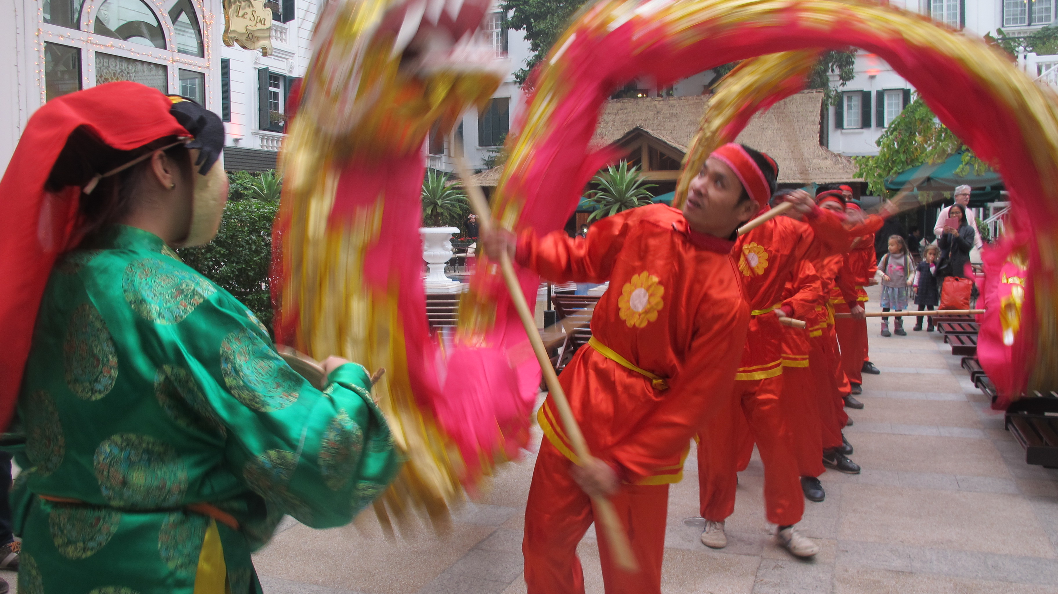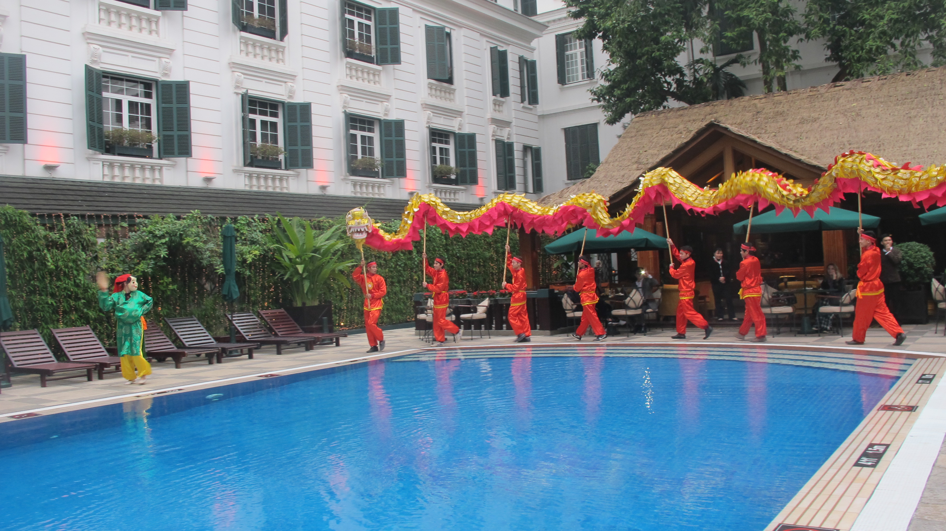 | A spectacular dragon dance performed around the hotel’s pool. |