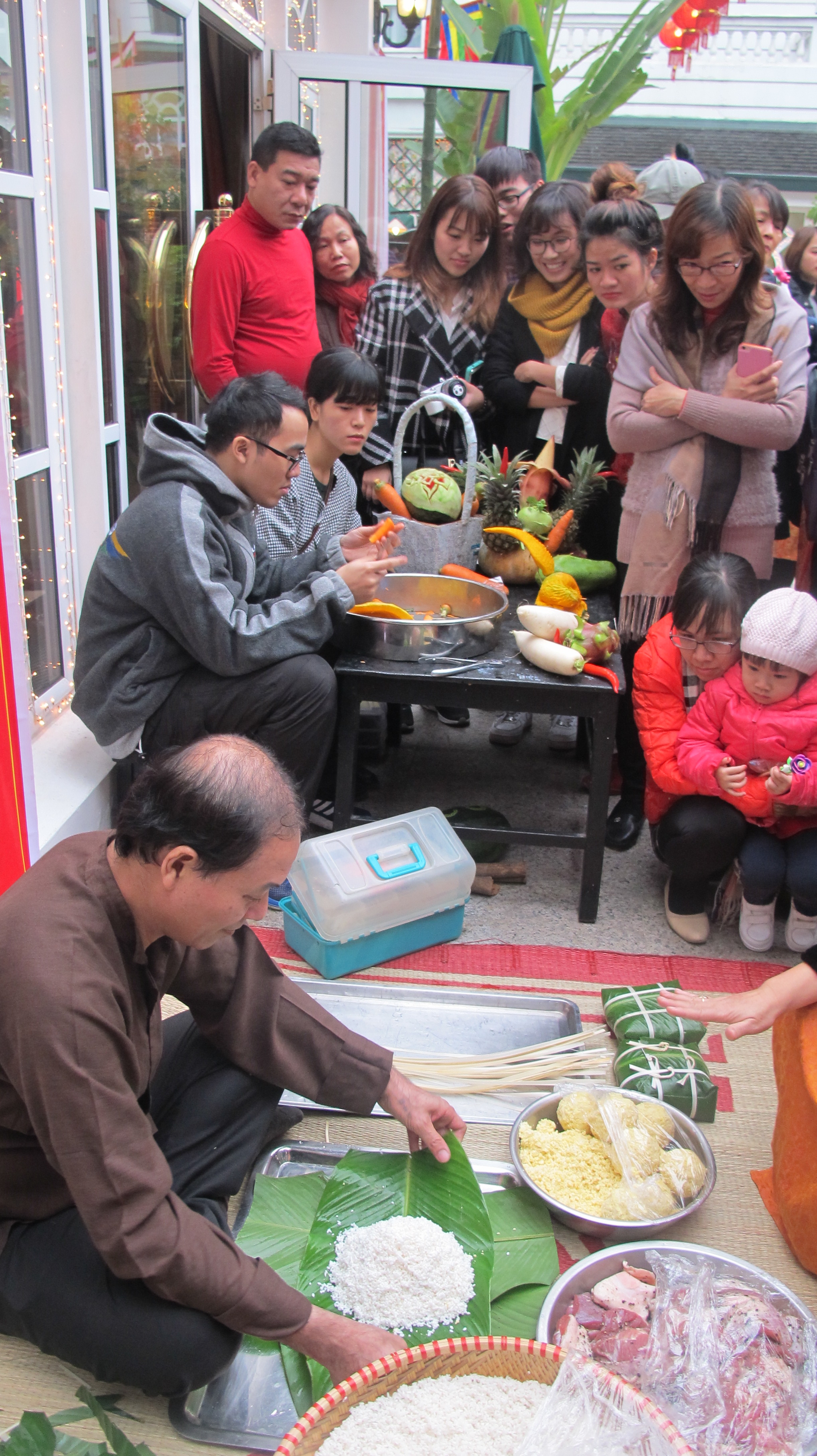 | Artisan Le Dung was showing visitors how to make Chung or square sticky rice cake. |