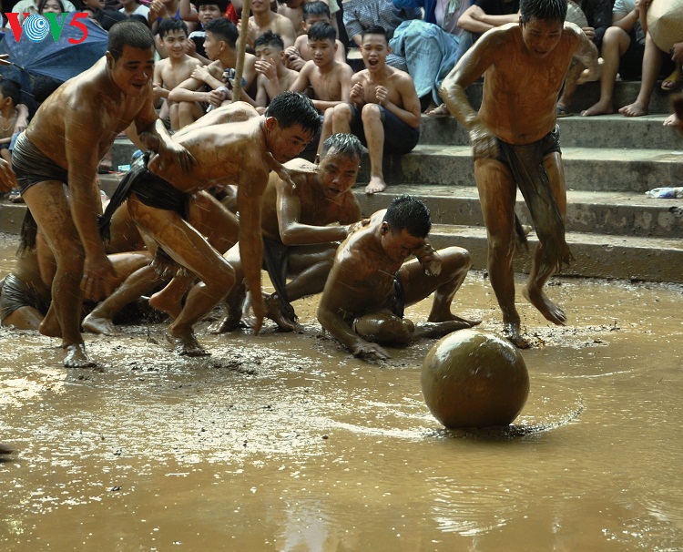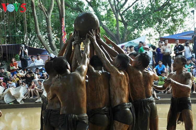 The 200-sqm wrestling field, built hundreds of years ago, is filled with liquid mud. At both ends of the yard, two holes, 80cm deep and 50cm wide, are dug for the goals. |