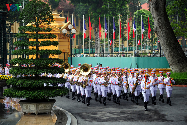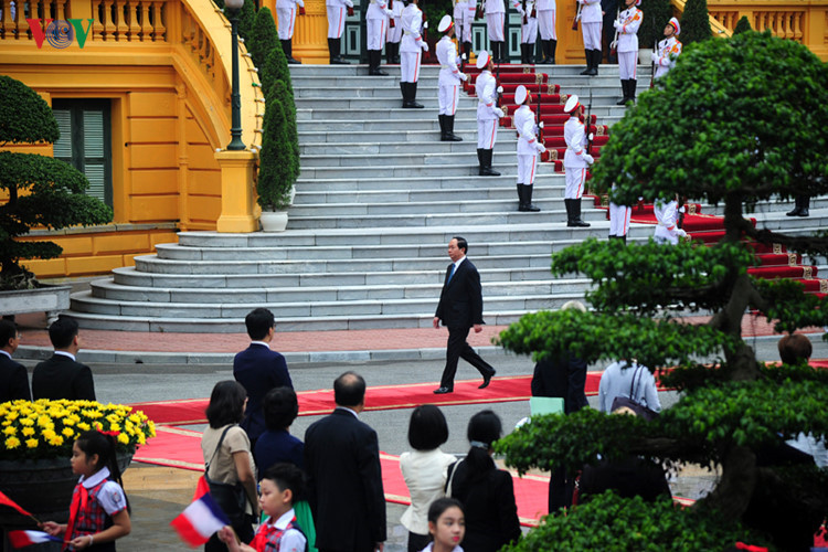 (VOVworld)- An official welcome ceremony for French President Francois Hollande took place on the morning of September 6 at the Presidential Palace in Hanoi.