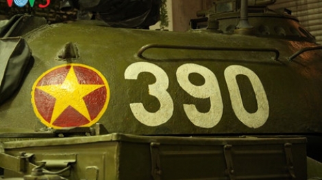 (VOVworld) - Tank number 390 crashed through the gates of Independence Palace, the last stronghold of the Sai Gon regime at noon on April 30, 1975, heralding the end of the war. Tank 390 was manned by four soldiers: commander Vu Dang Toan, first gunner Ngo Sy Nguyen, second gunner Le Van Phuong, and driver Nguyen Van Tap. 42 years on, the tank is a witness to history and recognized as a national treasure. It is now in the Tank and Armour Museum at Hoang Quoc Viet street, Hanoi. Replicas of the machine are also on display at Ho Chi Minh City's Reunification Palace.