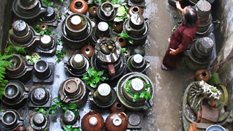 (VOV) - Manh, a local photographer in Bac Giang province, has spent his leisure time traveling the length and breadth of the province to collect used stone grinders and display them in his garden.