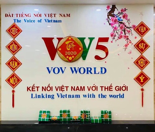 VOVWorld (VOV5) logo is seen in the second floor lobby of VOVWorld Building at 45 Ba Trieu street, Hanoi |