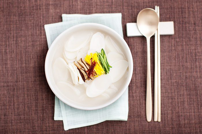 Tteokguk is a kind of soup that Koreans eat during the Lunar New Year celebration. Tteok means rice cake. (Photo: visitkorea)