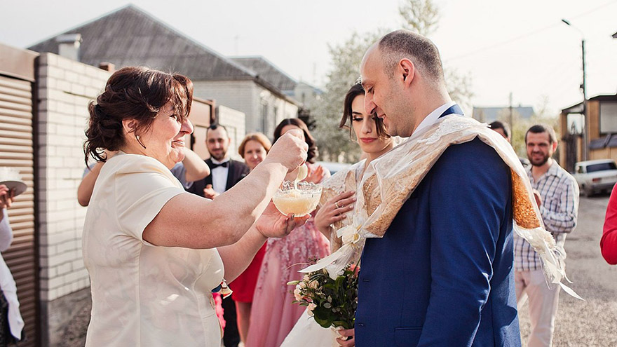 According to Armenian traditions, the newlyweds’ shoulders are covered with lavash when they enter their house as a symbol of well-being and fertility. (Photo credit: Кертог/WikiCommons) |
