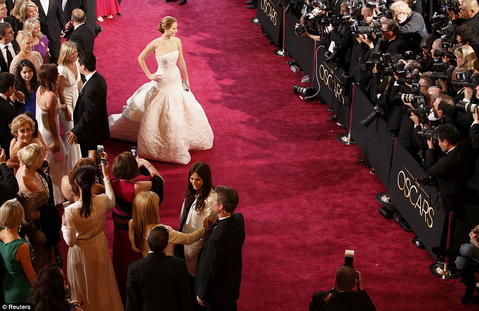 | Famous actress Jennifer Lawrence walked down the red carpet at the 2013 Oscar night in Kodak Theatre. (Photo: Daily Mail) |