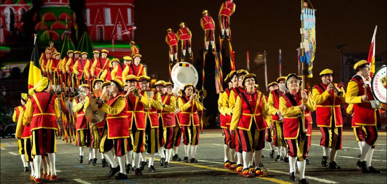 Mainly they dress in special costumes. They wear the Belgian flag colored costumes. They started wearing them after the World War 2 when Belgium was liberated from the occupation. They decided to celebrate by wearing the Belgian flag with 3 colors as their emblem.