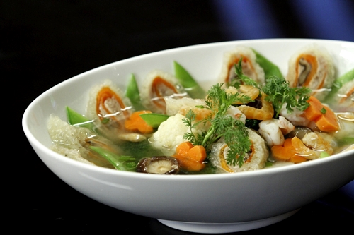 “The soup cooked with pork skin to offer to ancestors is a unique tradition to only people of Hanoi origins. It is very difficult and sophisticated to make. The soup includes dried pork skin, shrimp, lean pork, several seasonal vegetables including broccolis and carrots and cooked meat stock. Not to mention that making the stock was really complicated. It includes the stock from chicken and shrimp and thus has both the sweet and light flavours. The soup looks really colorful, delicious and luxurious.”