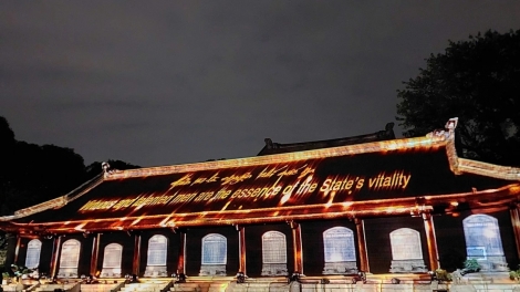 (VOVWORLD) - A 3D mapping film entitled "Historical Books in Stone" is being screened during night tours of the Temple of Literature in Hanoi. The show is expected to attract more visitors to experience the cultural and historical treasures of this relic site in a new way.