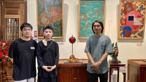 (VOVWORLD) - An exhibition called "Dialogue" combining lacquerware, music, and 3D art videos is underway in Hanoi. It is the debut exhibition of De.lac, a group of artists carrying out art projects inspired by lacquer. The group includes painter Truong Hoang Hai, painter Nguyen Quang Vu, and painter and VFX artist Nguyen Doan Quang Huy.