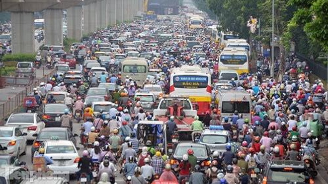 Wie ein Bienenschwarm von Autos und Mopeds auf Straßen von Hanoi. (Foto: vanhoathethao.vn) |
