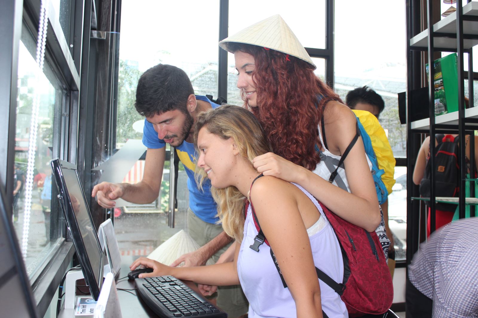 Ausländische Touristen recherchieren Tourismusinformationen in einer Auskunft für Touristen. (Foto: baodulich.net.vn) |