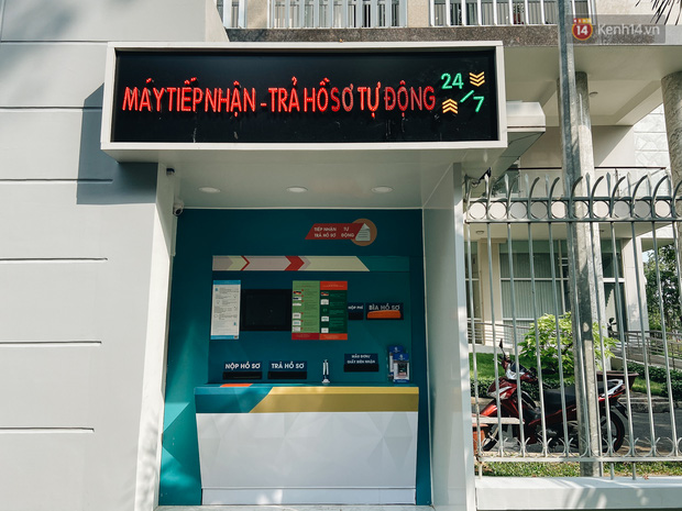 Der Automat zum Empfang und zur Rückgabe von Unterlagen rund um die Uhr befindet sich vor dem Hauptquartier des Volkskomitees des Stadtviertels 6 in Ho-Chi-Minh-Stadt. (Foto: kenh14.vn) |