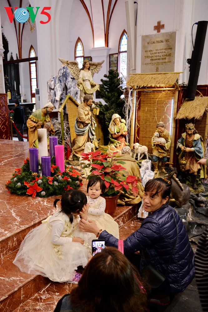 | Ein Krippenspiel ist in der Cua-Bac-Kathedrale aufgestellt worden. |