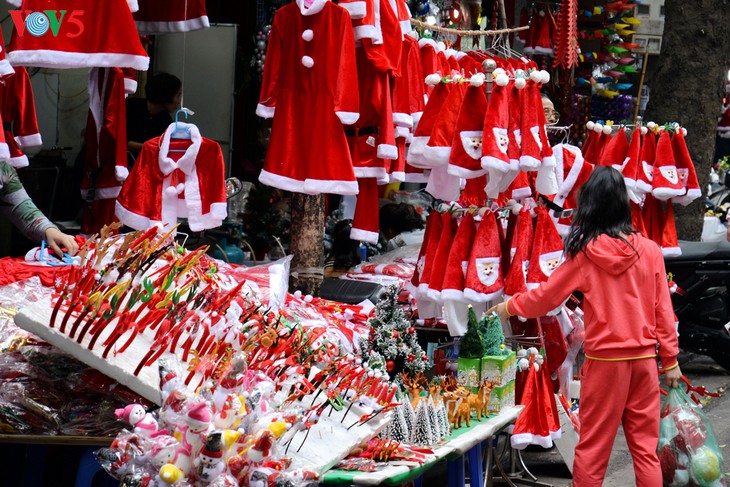 | Schon Anfang Dezember sind weihnachtliche Dinge in der Altstadt Hanois, vor allem in der Hang-Ma-Straße, zu sehen. |
