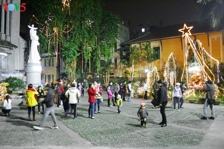 | Abends erstrahlt Hanoi dank der leuchtenden Weihnachtsbäume.(Foto: Weihnachtliche Installation auf dem Gelände des Einkaufszentrums VinCom-Tran-Duy-Hung.) |