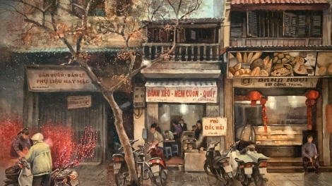(VOVWORLD) - Mit großer Liebe zu Hanoi hat Maler Hoang Phong aus Ho Chi Minh Stadt vor kurzem eine Sammlung von eindrucksvollen Aquarell-Bildern über die Stadt Hanoi vorgestellt. Die Kollektion besteht aus 28 Bildern über die Straßenecken in Hanoi, die seit Ende 2017 gemalt wurden. Maler Hoang Phong erzählte, dass er im Dezember vor vier Jahren Hanoi besucht habe. Er war von der Schönheit der Hauptstadt fasziniert. Phong liebt die frühen Morgen oder den Zeitpunkt nach 22 Uhr, in dem Hanoi still und friedlich ist.