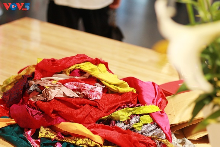 Le Viet Cuong zeigt, wie man Bilder aus Stücken von Seidenstoffen herstellt. |