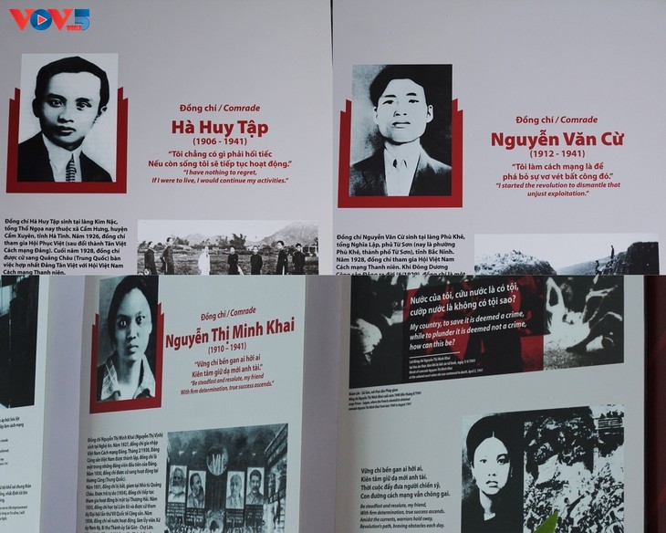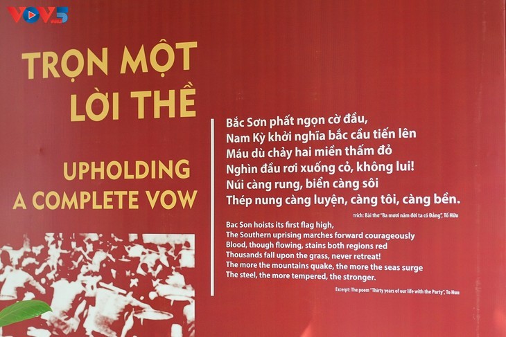 In der Ausstellungsecke „Einhaltung der Gelübde“ können die Besucher den Nam Ky-Aufstand erfahren. Zu dieser Zeit hatten die französischen Kolonialisten viele vietnamesische Parteimitglieder hingerichtet, darunter Ha Huy Tap, Nguyen Van Cu, Vo Van Tan, Phan Dang Luu, Nguyen Huu Tien und Nguyen Thi Minh Khai.