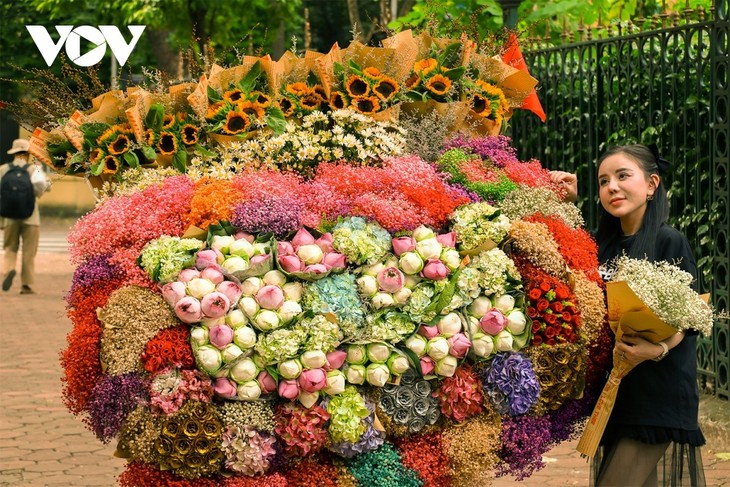 In vielen zentralen Straßen wie Phan Dinh Phung, Thanh Nien und Hoang Dieu erscheinen Blumenkutschen, die „den ganzen Herbst von Hanoi tragen“.