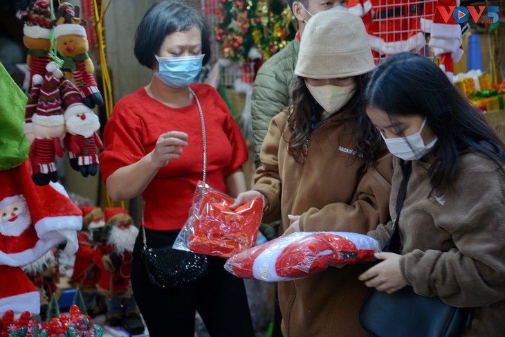 Die Hang Ma Straße ist immer belebt in der Weihnachtssaison. Viele Leute kommen hierher, um Dekorationen zu kaufen und die lebendige Atmosphäre der Straßen zu genießen.