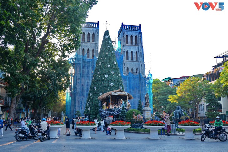 Seit Anfang Dezember sind viele Einkaufszentren, Plätze und Hauptstraßen von Hanoi farbenfroh geschmückt, um das Weihnachten 2021 zu begrüßen.