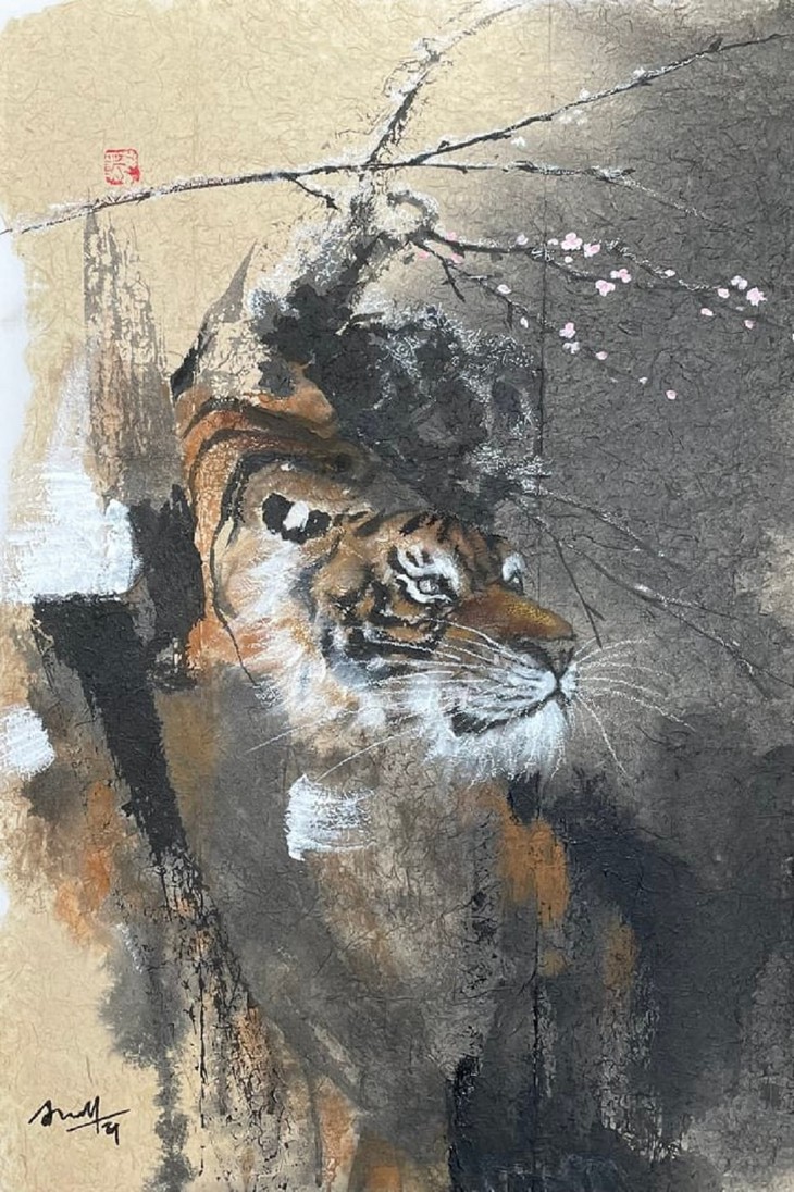 In den letzten Jahren hat der Maler Nguyen Doan Ninh zum traditionellen Neujahrsfest Tet oft Tiere gezeichnet. Dieses Jahr malte er zum ersten Mal Tiger. Er zeichnete 48 seinem Alter entsprechende Tigerbilder.