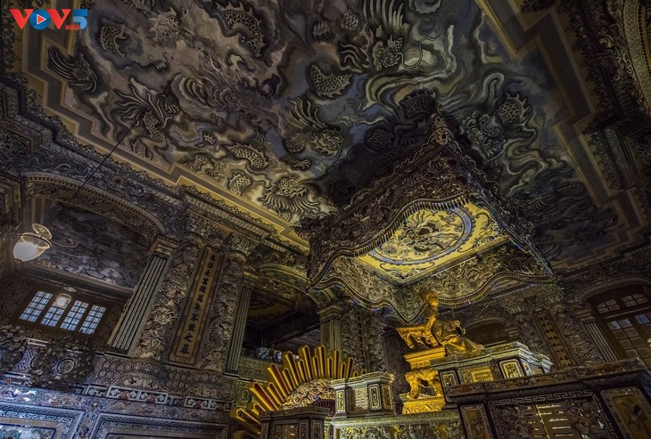 Im Khai Dinh-Mausoleum – dem letzten Mausoleum der Nguyen-Dynastie – werden viele historische und kulturelle Werte und Künste aufbewahrt. Die Einrichtung ist die Kombination zwischen asiatischer und europäischer Architektur.