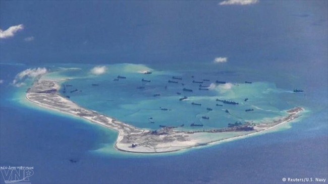 | Der Bau der künstlichen Inseln durch China auf der vietnamesischen Inselgruppe Truong Sa. (Foto: Reuters/US Navy/vietnam.vnanet.vn) |