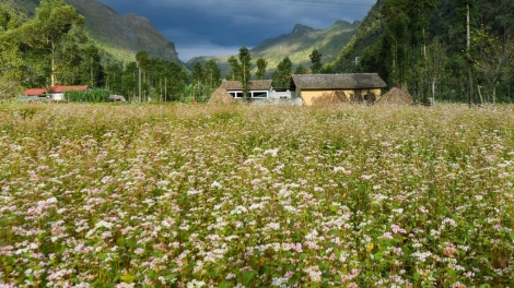 (VOVWORLD) - In den letzten Monaten des Jahres befindet sich die Provinz Ha Giang, die am nördlichsten Punkt des Landes liegt, in vollem Sonnenschein. Die schwarze Farbe der felsigen Berge wird von der weißen und rosafarben Blüte des Echten Buchweizens ersetzt. Seit vielen Jahren ist der Echte Buchweizen eine typische Blume des Kalkplateaus, der während der Saison zahlreiche Menschen für den Besuch in Ha Giang fasziniert.