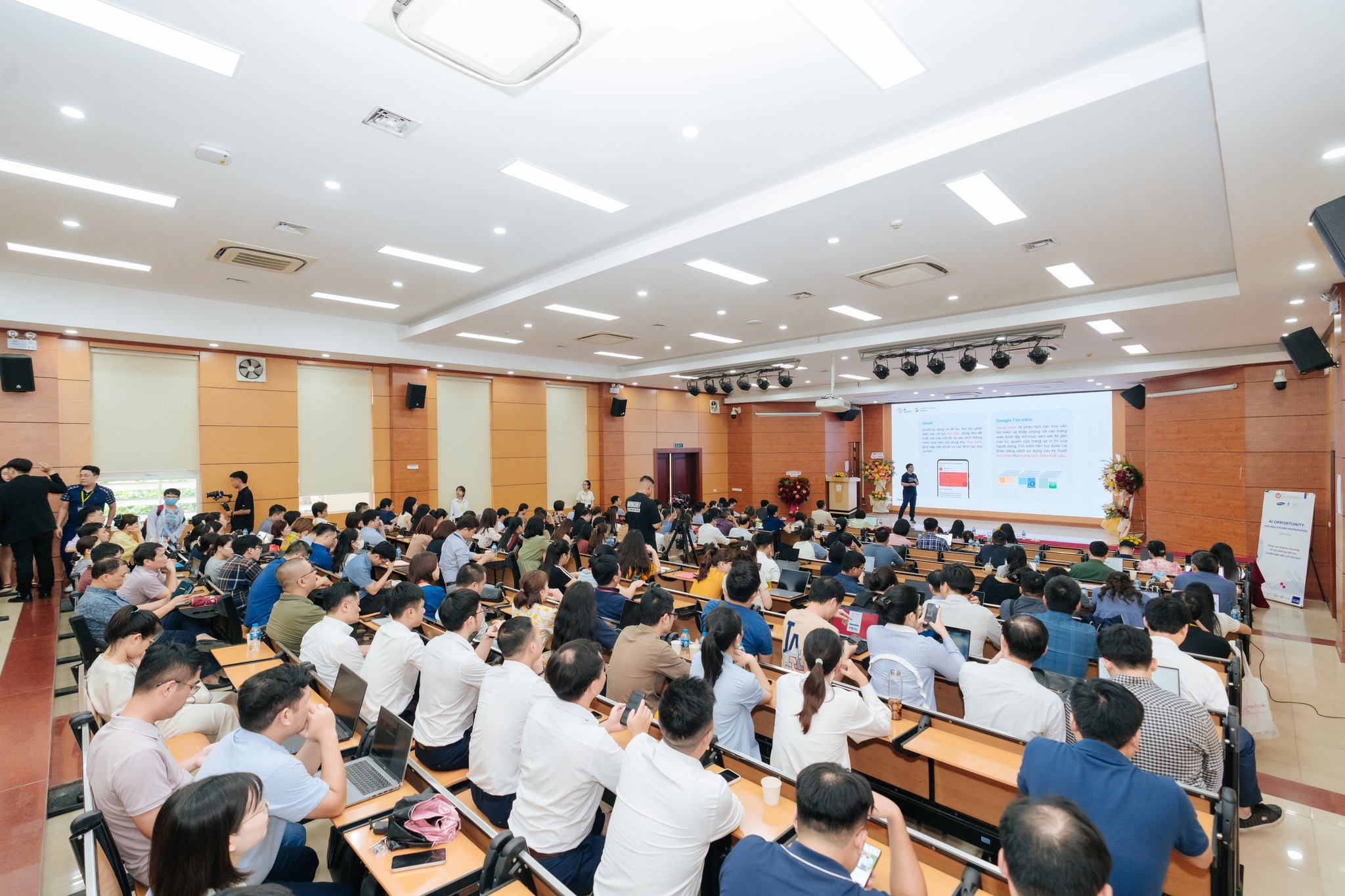 The first training session of “AI Opportunities for Healthcare Professionals” takes place after the opening ceremony on July 18, 2025, gathering 300 plus healthcare professionals from major medical facilities in Hanoi. (Photo: Hoang Pham) |