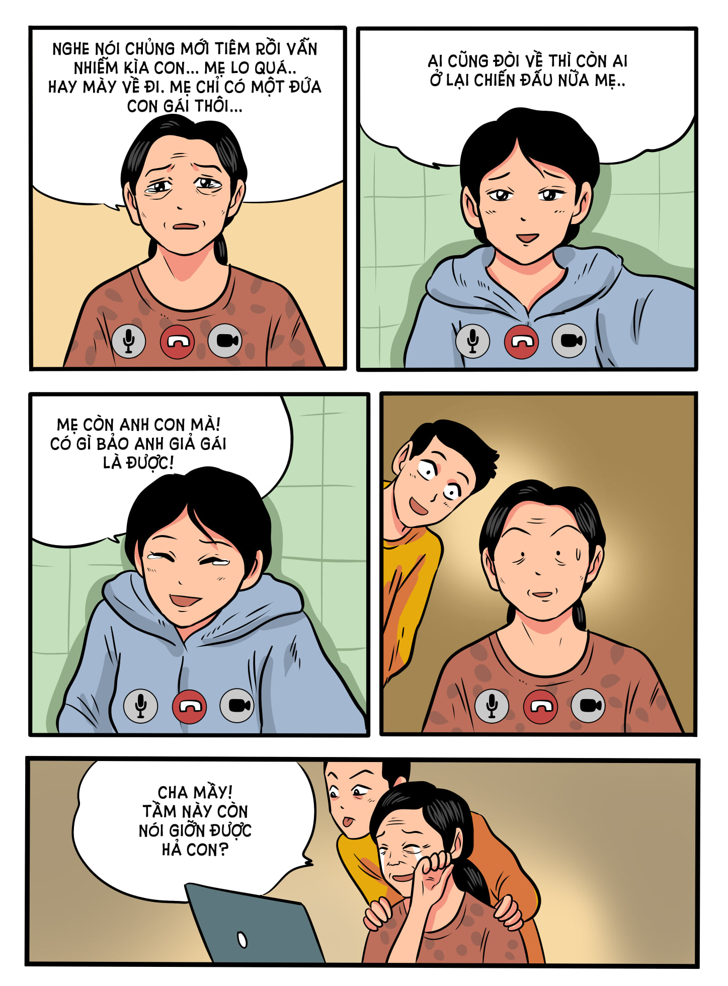 To Nguyen, a college student who is stuck in Ho Chi Minh City because of travel restrictions, is touched and, at the same time, motivated by Thang Fly Comics which highlights good deeds every day around us. Nguyen told VOV, “‘A Thousand Words’ is my favorite drawing from Thang Fly Comics. I’m not a frontline worker like the protagonist in this drawing, but just like her, I get phone calls from my parents every single day asking me whether I am safe, I have enough food, or have run short of anything. I love and miss my parents a lot. Also I’m sincerely thankful for those who risk their lives to save others.”