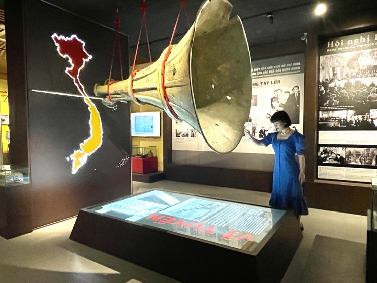 One of the most notable artifacts in the Museum is a 500W loudspeaker which was originally placed on the north bank of the Ben Hai river in Quang Tri province to broadcast VOV programs to people on both sides of the river during the American war. Also on display is the news bunker built by the staff of the Nhan Dan newspaper to avoid bombardment, the darkroom where the Vietnam News Agency developed film, and the first camera used by Vietnamese television.