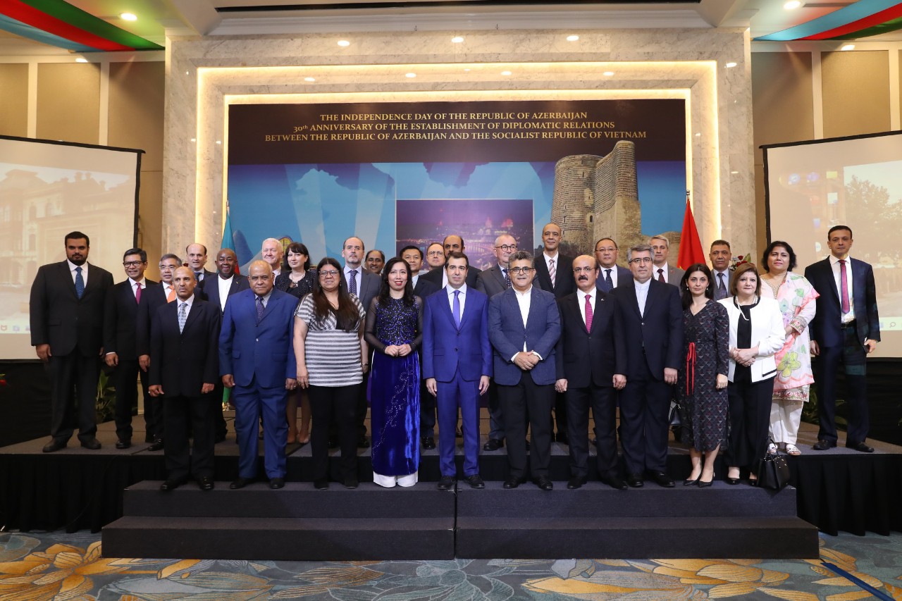 Ambassador Anar Imanov (C) at a ceremony in Hanoi on May 27, 2022, to mark Independence Day of the Republic of Azerbaijan and the 30th anniversary of diplomatic relations between Vietnam and Azerbaijan (Photo credit: Embassy of Azerbaijan in Hanoi) |