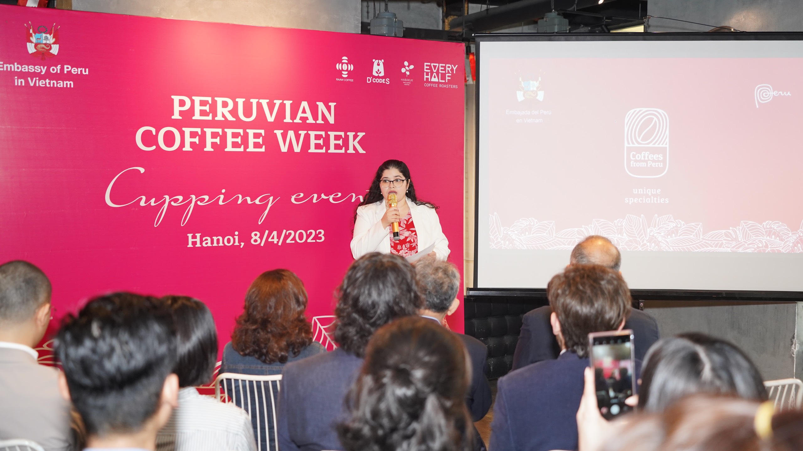 Kristell Áviles Flores: For the first edition of the Peruvian Coffee Week in Vietnam, the Embassy is introducing 6 specialty coffees from 4 regions in order to promote its export to the Vietnamese market. We are bringing geisha from Junin and another geisha from Pasco, one caturra from Junin, and another one from Ucayali, and Guantipeka, and a blend of catimor and bourbon from Amazonas. Last year, Peru exported coffee to Vietnam for the total amount of 3 million USD.