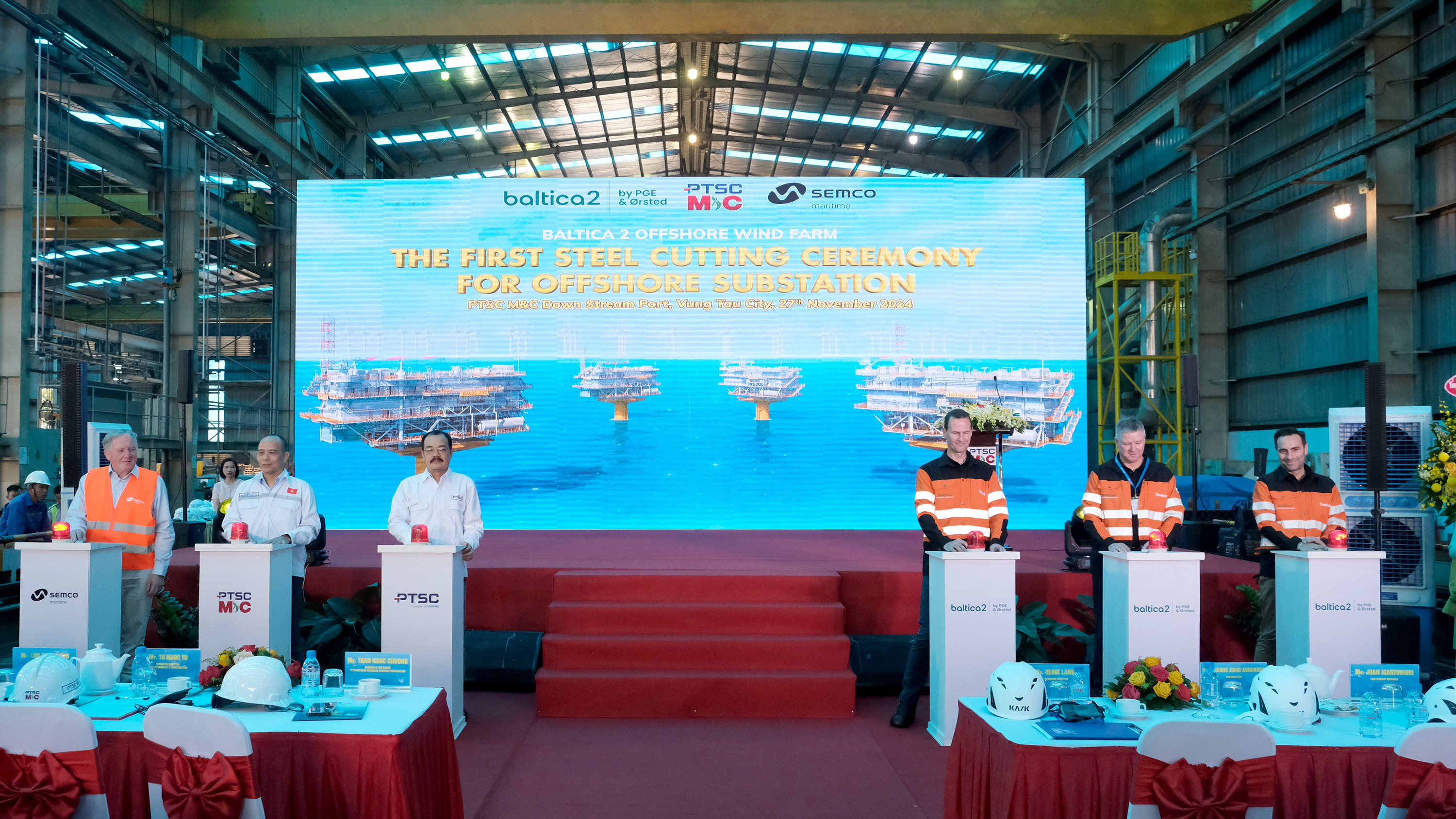 The First-Cut Ceremony for Baltica 2 - Substation Platforms at PTSC M&C’s Fabrication Yard in Vung Tau City (Vietnam) on November 27, 2024. (Source: PTSC) |