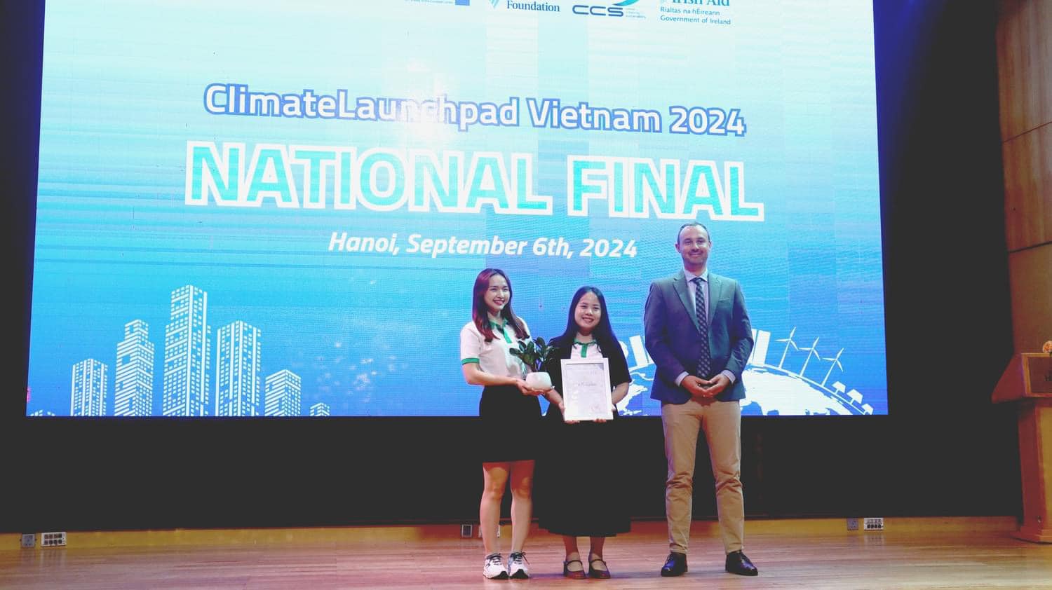 AirX Carbon's NetZero Pallet, a pallet made from agricultural waste, wins the top prize at the ClimateLaunchpad Vietnam 2024 competition. (Photo credit: AirX Carbon Facebook) |