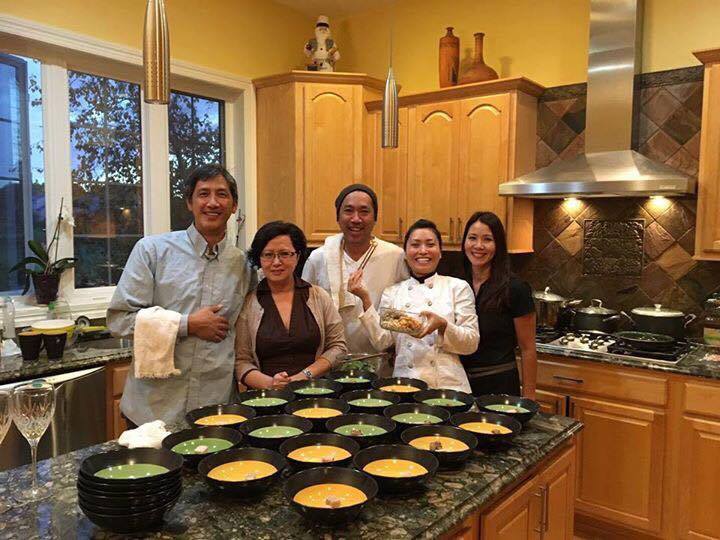 Diep To (second from right) opens cooking classes to promote Vietnamese cuisine in many countries.