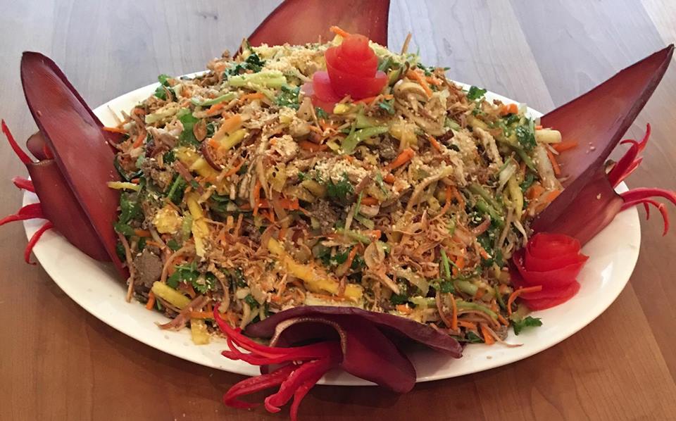 Diep To: In Canada, people are fascinated with banana flower salad because they have never seen banana flower. I keep some petals to make decorations for them to see that this kind of salad they are having. They feel so exotic. As green papaya is popular with Thai cuisine, sometimes I mix different kinds of vegetable together to make a salad, let’s say I would make pineapple with green mango, and banana flower as well. Sometimes I just make banana salad itself, depending on the freshness that I could find in the market.