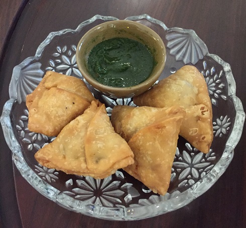 Mrs. Manu: Samosa is one of favorite snacks across India. Any gathering and any get-together, all have samosa. It has a crispy outer shell in a triangle form, filled with mainly potatoes, flavored with different herbs and spices.