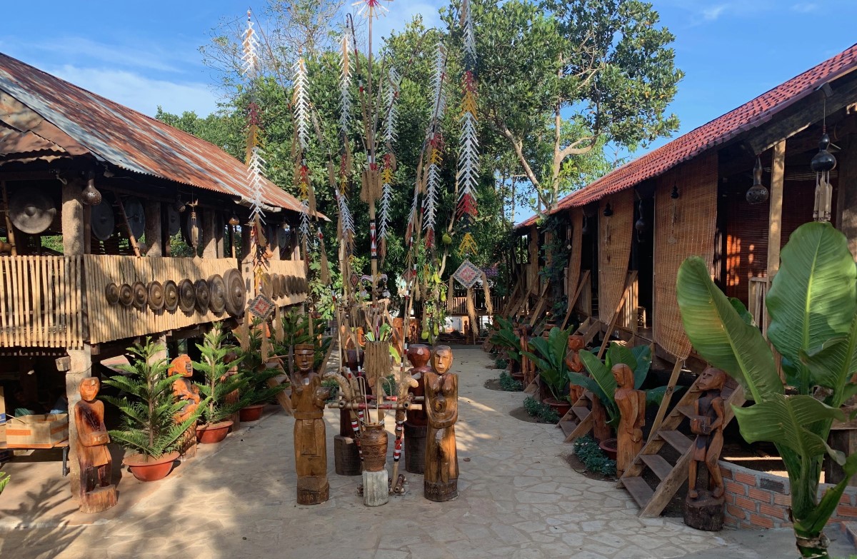 À droite de la maison rông se trouve un espace d’exposition de sculptures en bois, représentant des figures humaines, animales ainsi que divers objets. Selon le patriarche Siêu Nui, pour créer une statue à la fois vivante et proche des habitants, le sculpteur doit posséder une grande expérience de vie et une compréhension profonde de la culture de son ethnie: