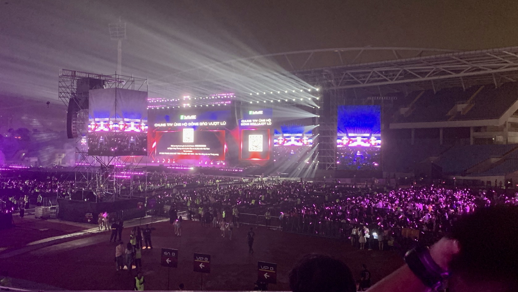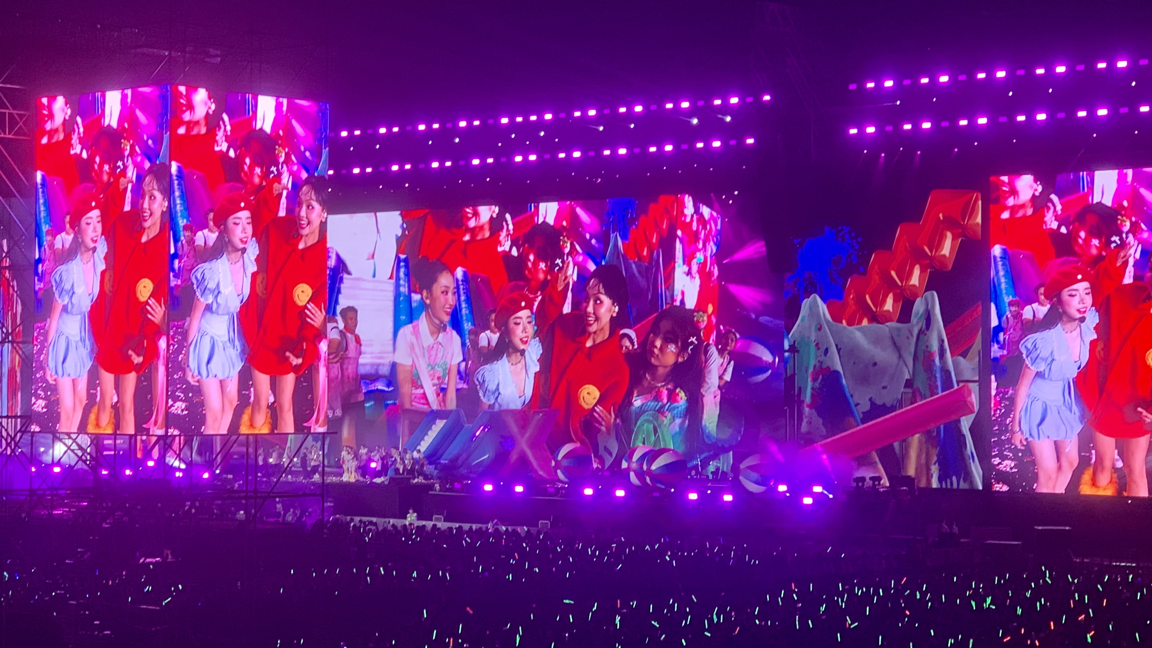 Des dizaines de milliers de bras se sont levés simultanément, les lightsticks se sont allumés en vagues violettes. Les chansons se sont enchaînées sans que je sache dans quel ordre. Tout devenait flux, couleurs, battements de cœur: Từng (Autrefois), Easier, Cầm kỳ thi họa (Musique, échecs, poésie et peinture), Quả chín quá (Fruit trop mûr), Đồng dao xinh gái (Comptine des belles)…