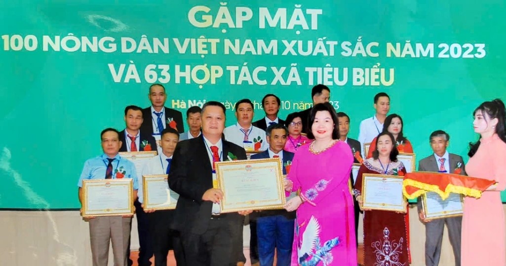 Châu Minh Hai (gauche) reconnu comme l'un des 100 excellents agriculteurs vietnamiens en 2023. Photo: VOV |